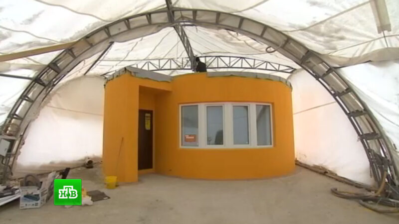 В Московской области местным умельцем создан 3D-принтер для печати домов. Сооружение, построенное по инновационной технологии, стоит на 2/3 дешевле дома, возведенного традиционным способом. Причем строительство можно вести на любом рельефе местности.
