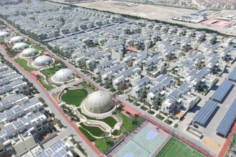 Проект «Эко-эффективный город», реализуемый дубайской компанией DiamondDevelopers. одной из первых вышедшей на местный рынок полной земельной собственности и строительства с момента внедрения института такой собственности в 2002 году, называют первым реальным эко-эффективным микрорайоном на Ближнем Востоке. Комплекс площадью 5 млн. кв. футов (464,5 тыс. кв. м) расположен в 18 милях от Дубая. Ожидается, что Эко-эффективный город станет домом для 2 000 человек. Компания TrinaSolar, реализовавшая уже несколько крупномасштабных проектов, была выбрана застройщиком в качестве поставщика солнечного коллектора из 40 000 панелей, который будет производить около 16 ГВт-ч электроэнергии в год.