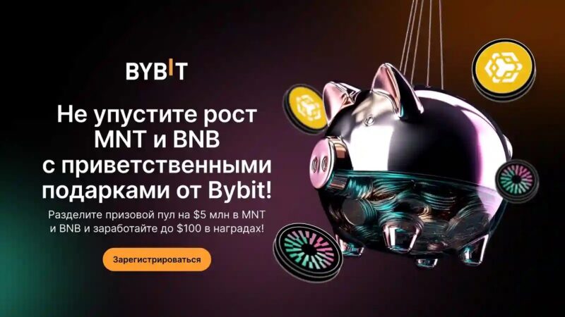Bybit, вторая по величине криптобиржа в мире по торговому объему, предлагает новый призовой пул на $5 000 000. Акция посвящена токенам MNT и BNB и является частью программы приветственных бонусов. Предложение приурочено к успешным рыночным результатам этих активов летом 2025 года. Каждый новый пользователь, соответствующий требованиям, может получить до $100 в бонусах — пока действует акция.