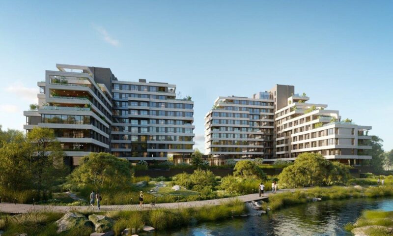 На границе природной зоны разместится клубный дом «Река», запроектированный со ступенчатым понижением этажности (от 11 к 4 этажам) в сторону русла Раменки. При квартирах проекта премиум-класса будут размещены террасы с великолепными видами на окружающую природу и внутренний двор с приватным выходом к реке.