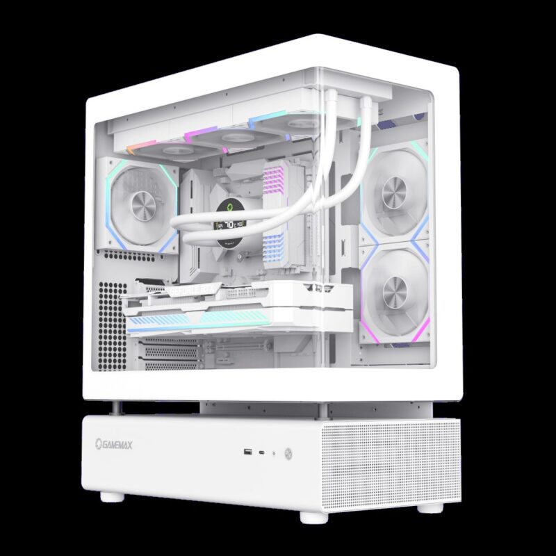 GAMEMAX, ведущий производитель компонентов для ПК, представил двухкамерный корпус N80 с панорамным дизайном. GAMEMAX N80 это не только высокая функциональности, но и привлекающая внимание эстетика, открывающая вид на всю начинку компьютера.