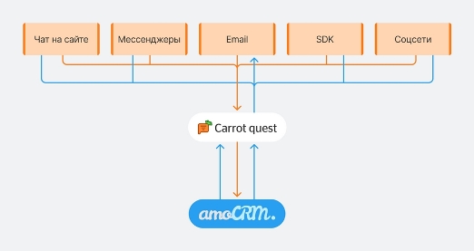 С августа 2025 года клиенты Carrot quest получили доступ к обновлённой интеграции с amoCRM, которая автоматизирует передачу всех диалогов из чатов, мессенджеров и социальных сетей прямо в CRM-систему. Теперь менеджеры видят полный контекст общения с клиентом в amoCRM и могут продолжить диалог без переключения между сервисами, что существенно сокращает время обработки заявок и снижает риск потери теплых лидов.