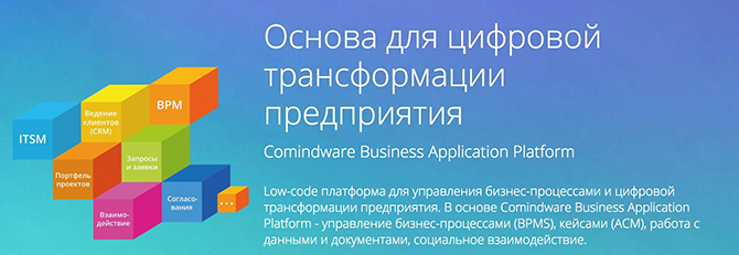 Новая платформа Comindware Business Application Platform построена на базе запатентованных технологий компании Comindware и, безусловно, является гордостью отечественных разработчиков. Платформа содержит в себе как передовые подходы к управлению бизнесом – процессный подход к организации бизнес-решений на базе BPMN 2.0 – так и самые современные технологические решения – графовую базу данных, хранение информации в оперативной памяти (In-memory), пользовательские интерфейсы на базе HTML5. Ключевым термином систем, создаваемых на базе платформы Comindware Business Application Platform, является low-code – способность оперативно создавать и дорабатывать бизнес-приложения с минимальными затратами на программирование.