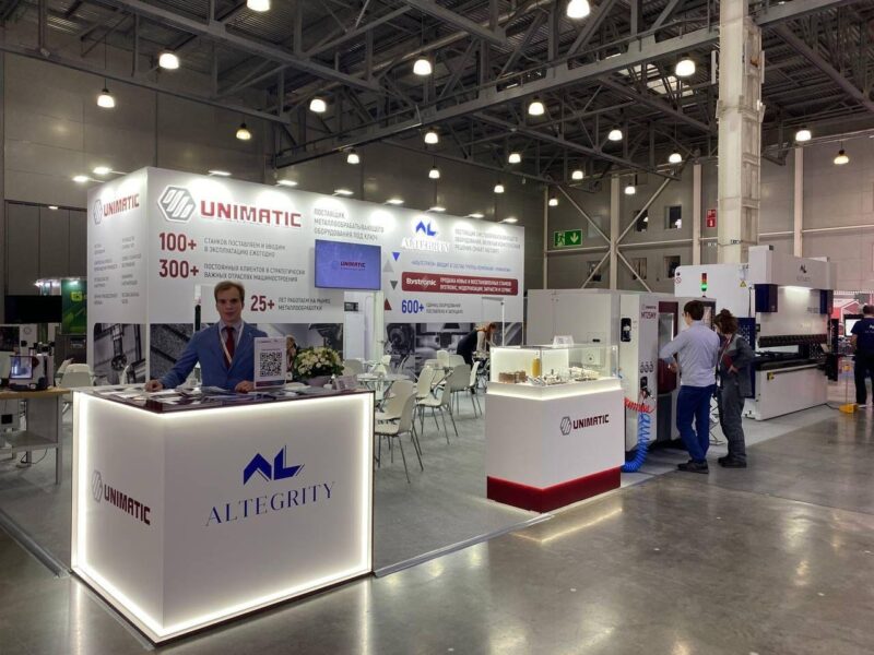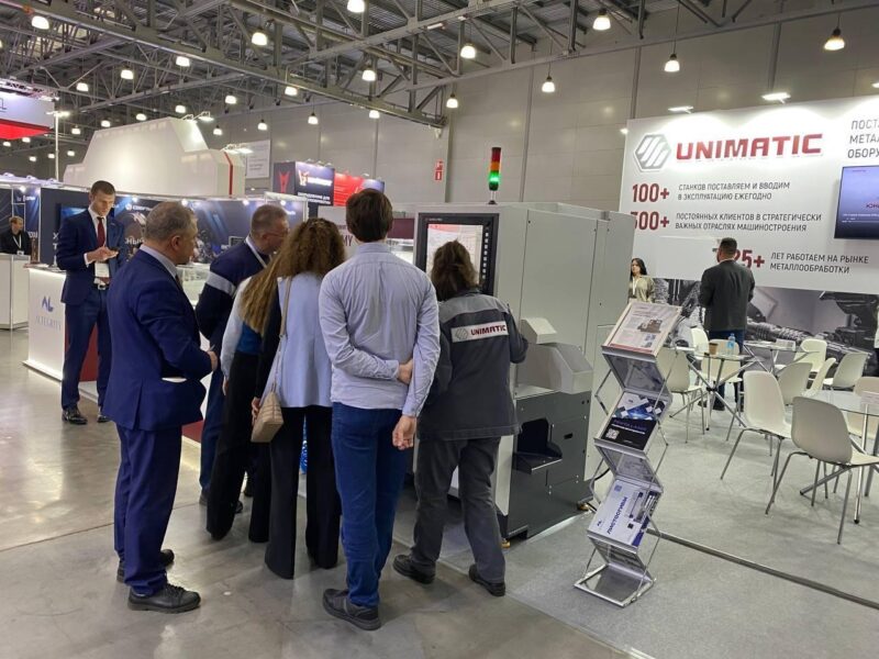 Среди других экспонатов — учебные станки с ЧПУ серии «Униматик. Юный машиностроитель», внесённые в реестр российской промышленной продукции, образцы режущего инструмента под брендом Unimatic и современный листогибочный пресс.